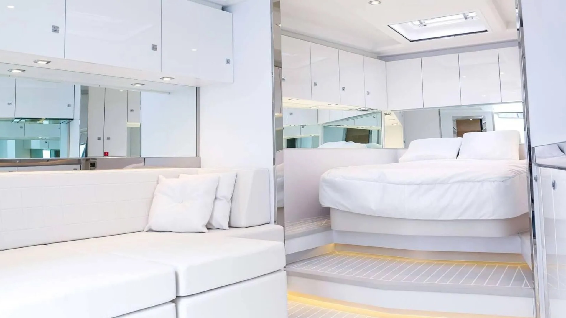 On the foredeck, vast sunbathing and lounging areas are available, while the cockpit enjoys expanded dining spaces and an electric Bimini. Below deck, the VanDutch 55 provides accommodation for up to six guests, making it a fantastic boat for longer-range coastal cruising and the flagship in the VanDutch family.